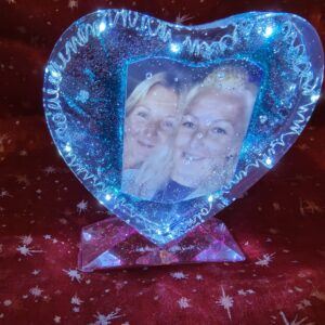 This is a Hart photo in resin with Lights, in an opaque resin with hints of sparkles glitter.