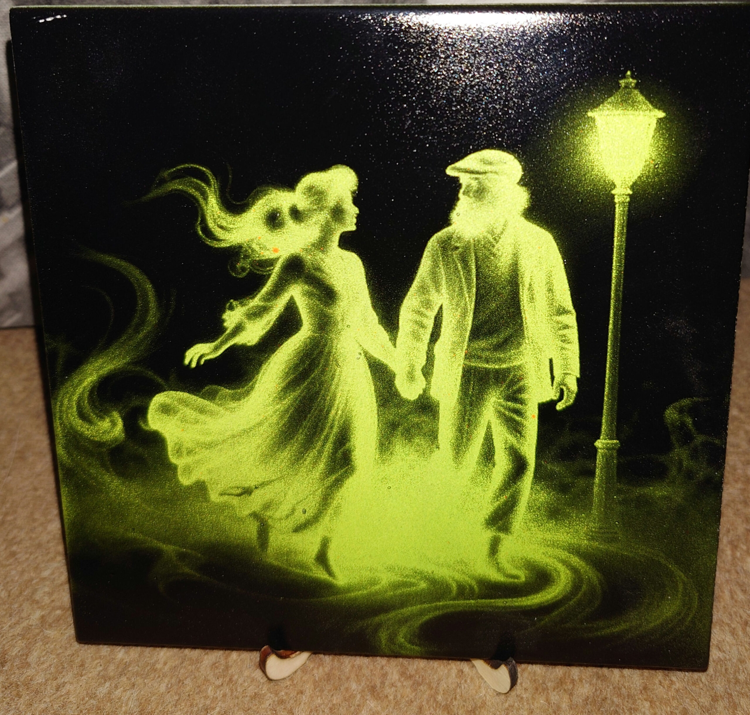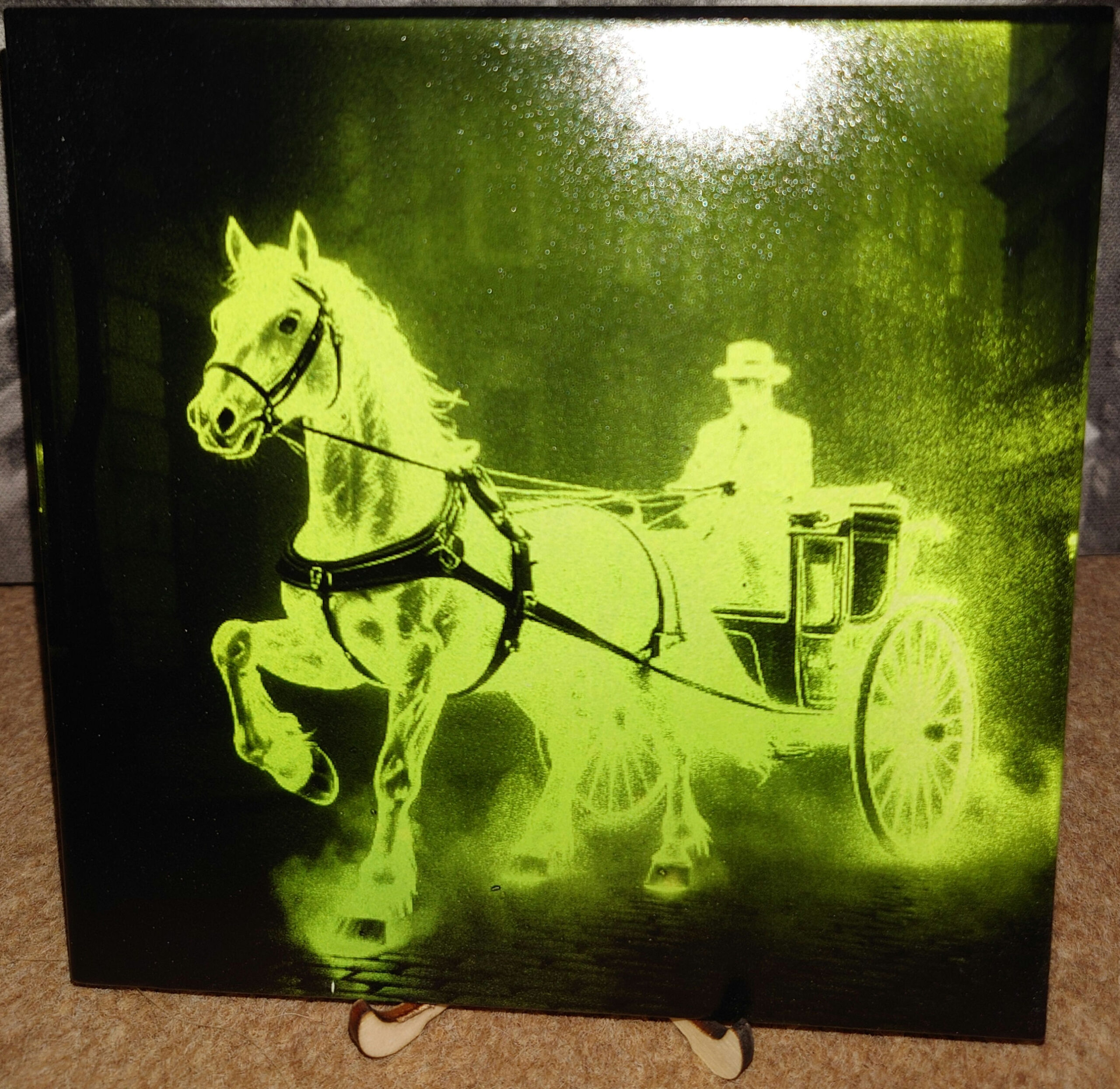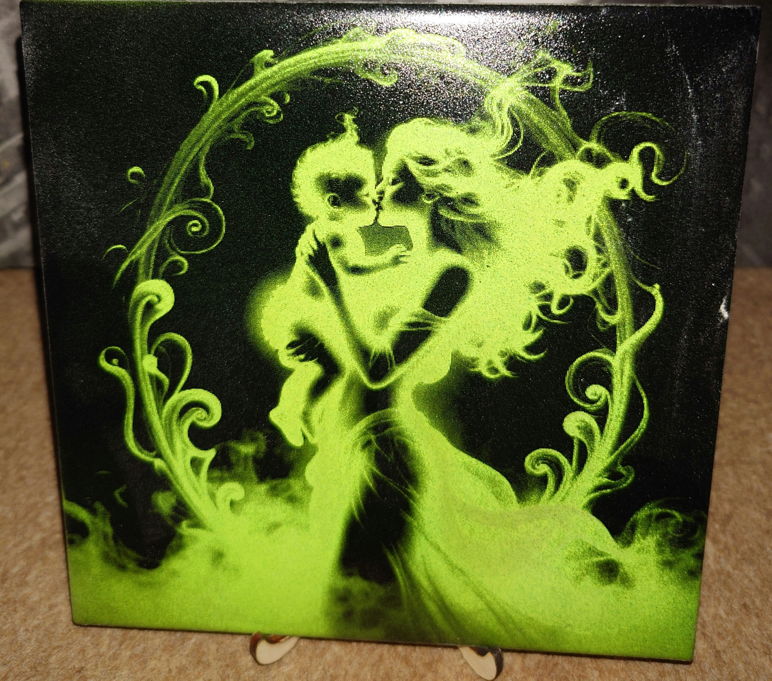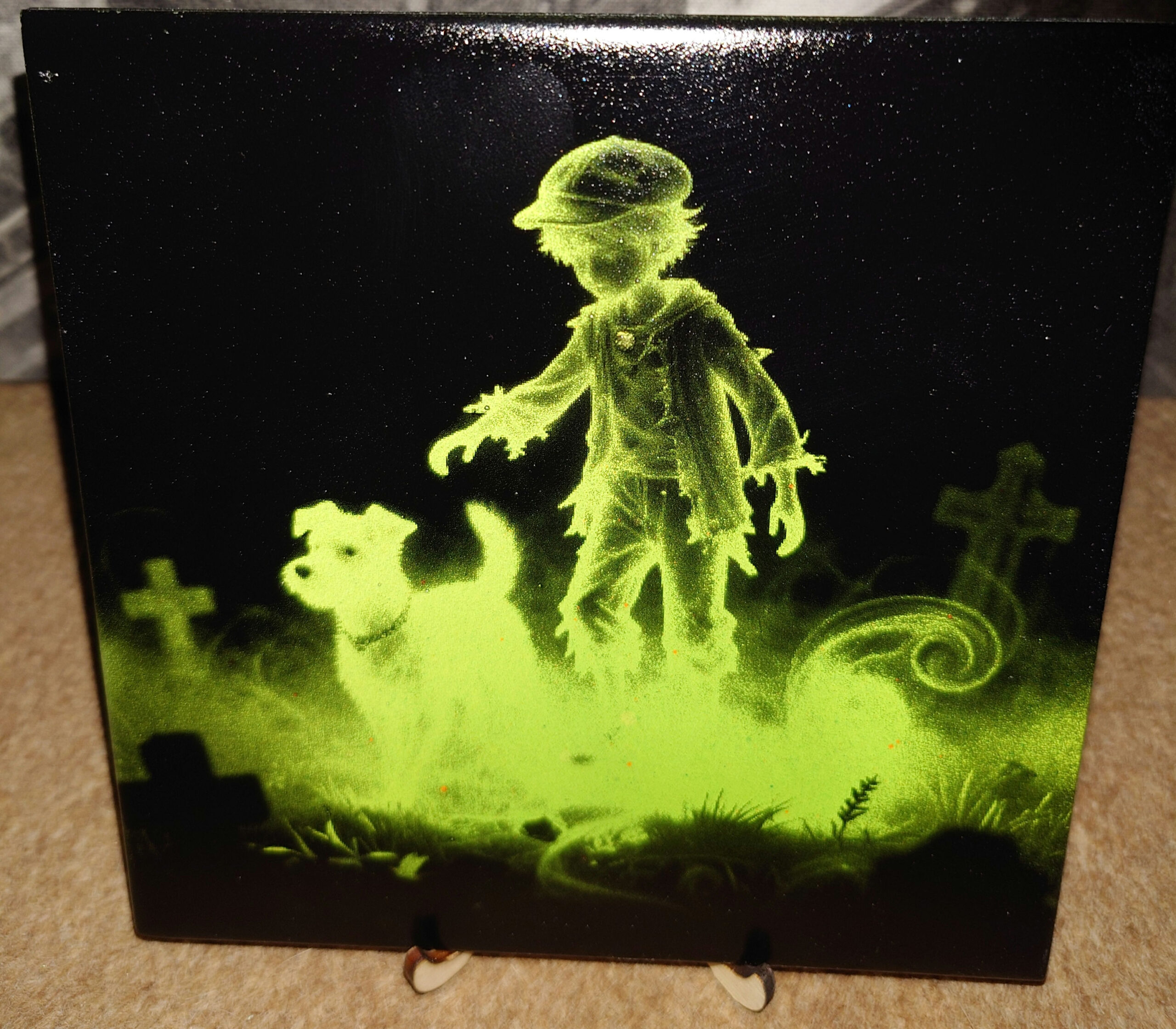 The 150 X 150mm tiles are first painted, then engraved and then given a coat of clear laquer for protection