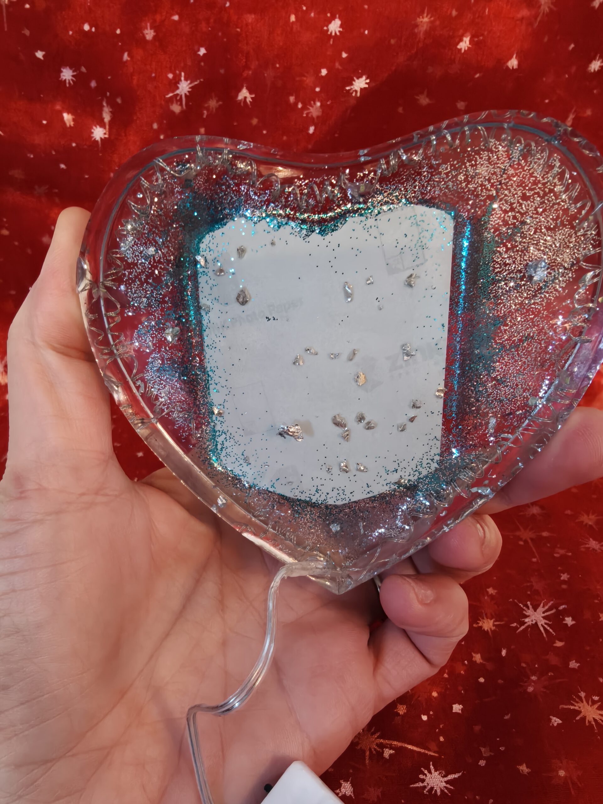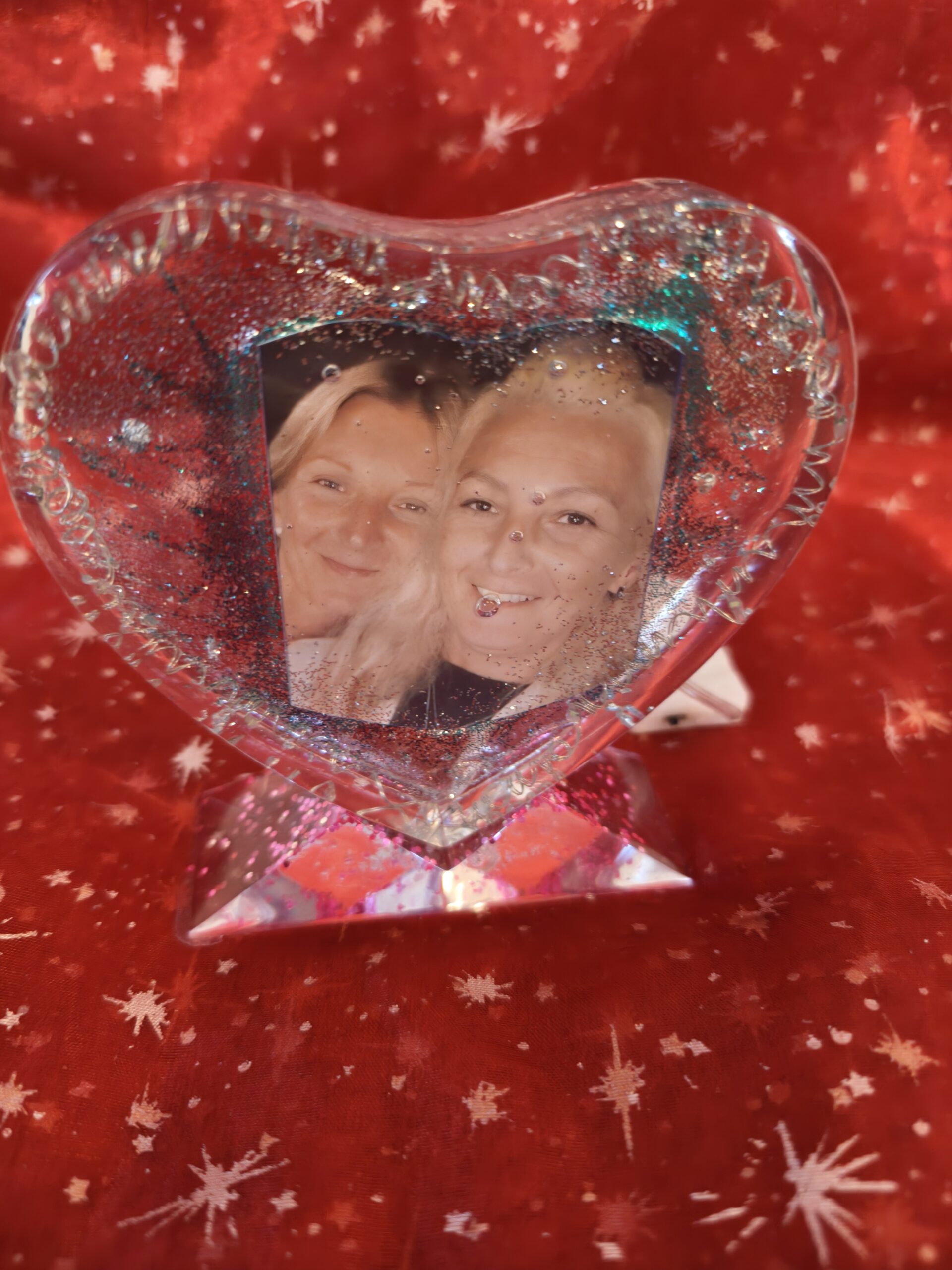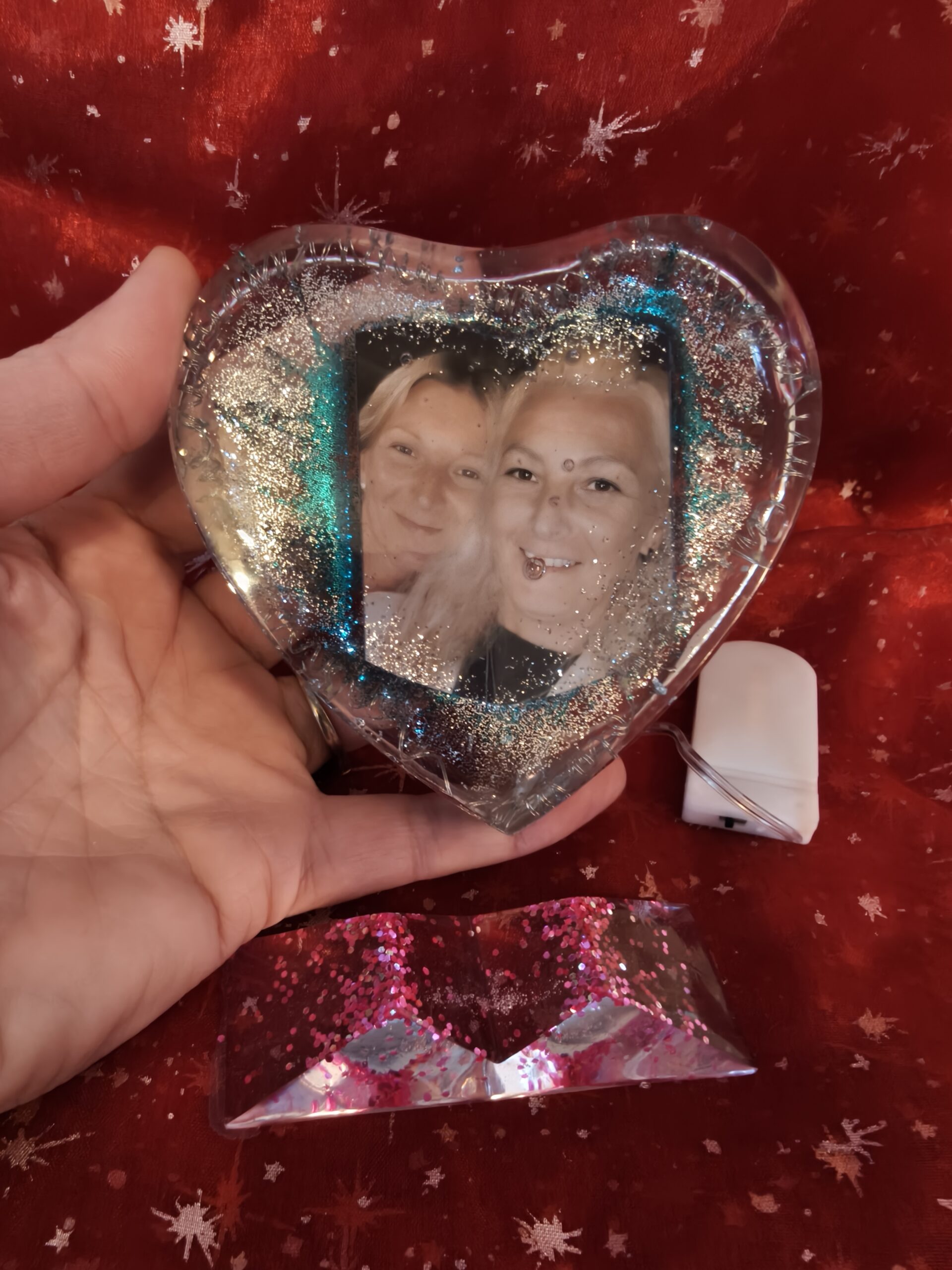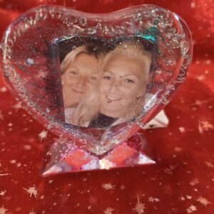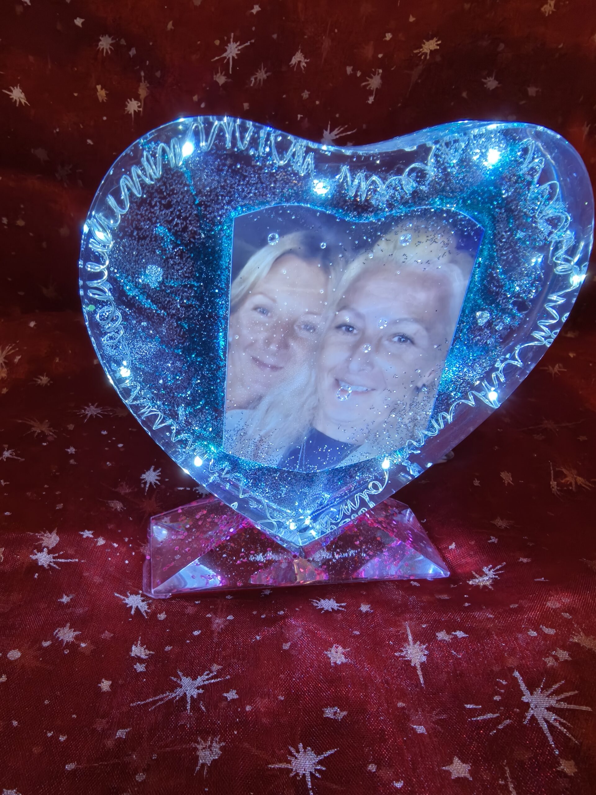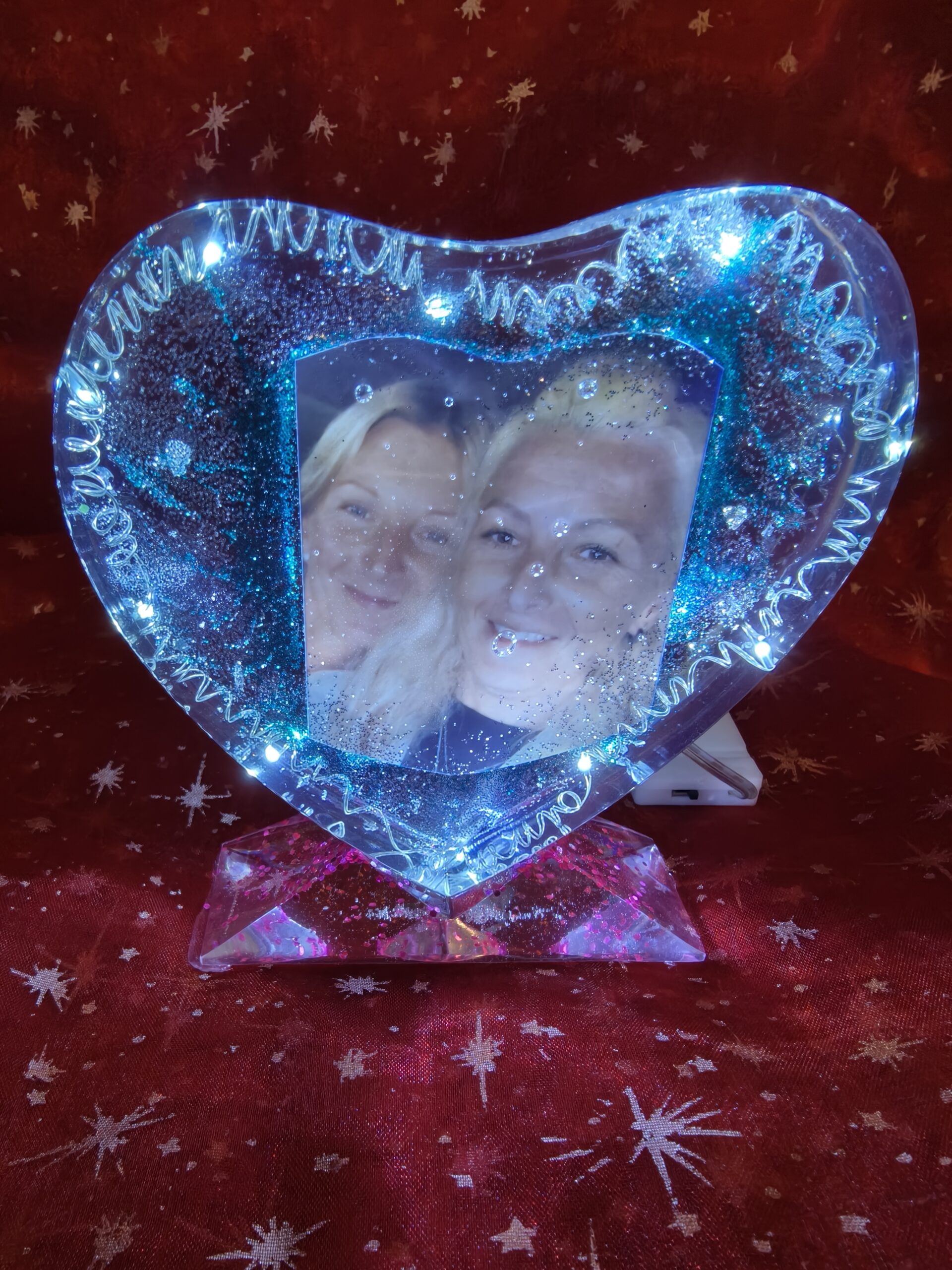 Photo in Resin, Hart shape with stand and Lights.