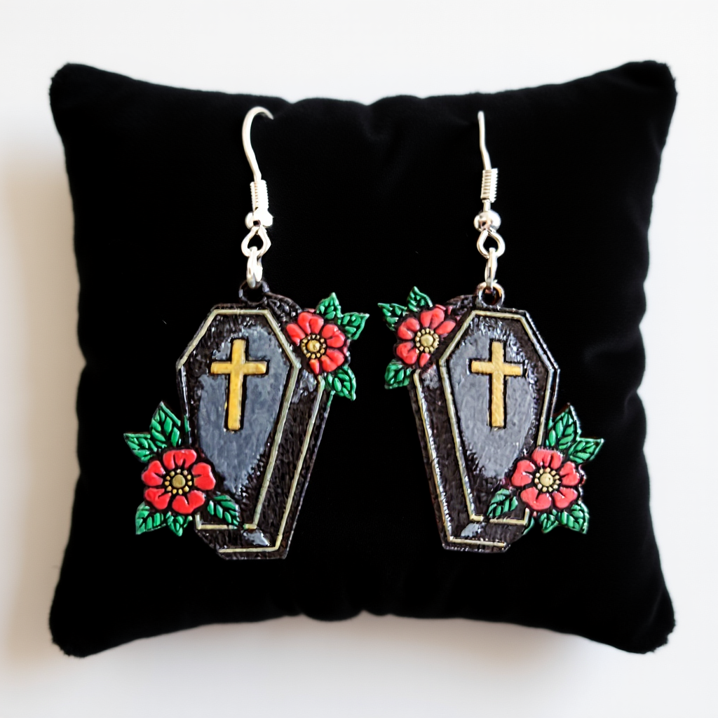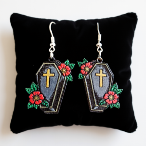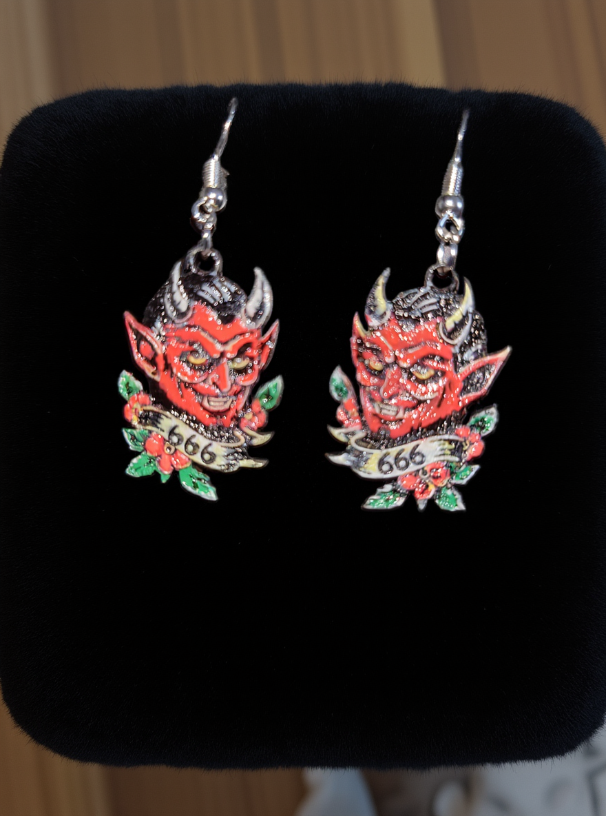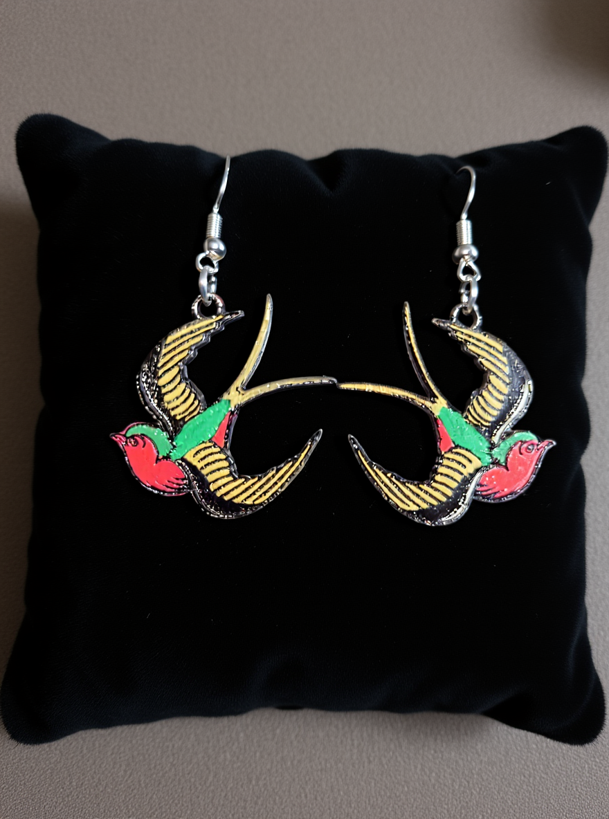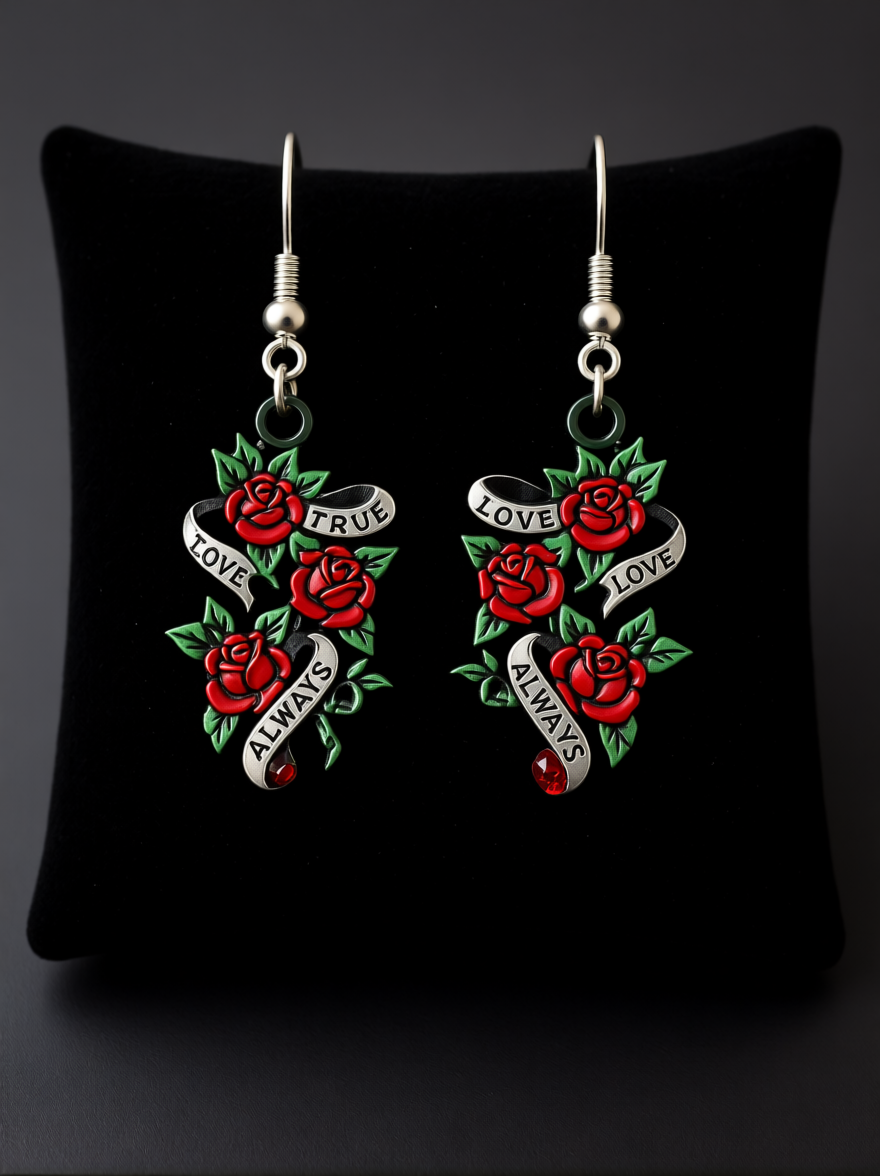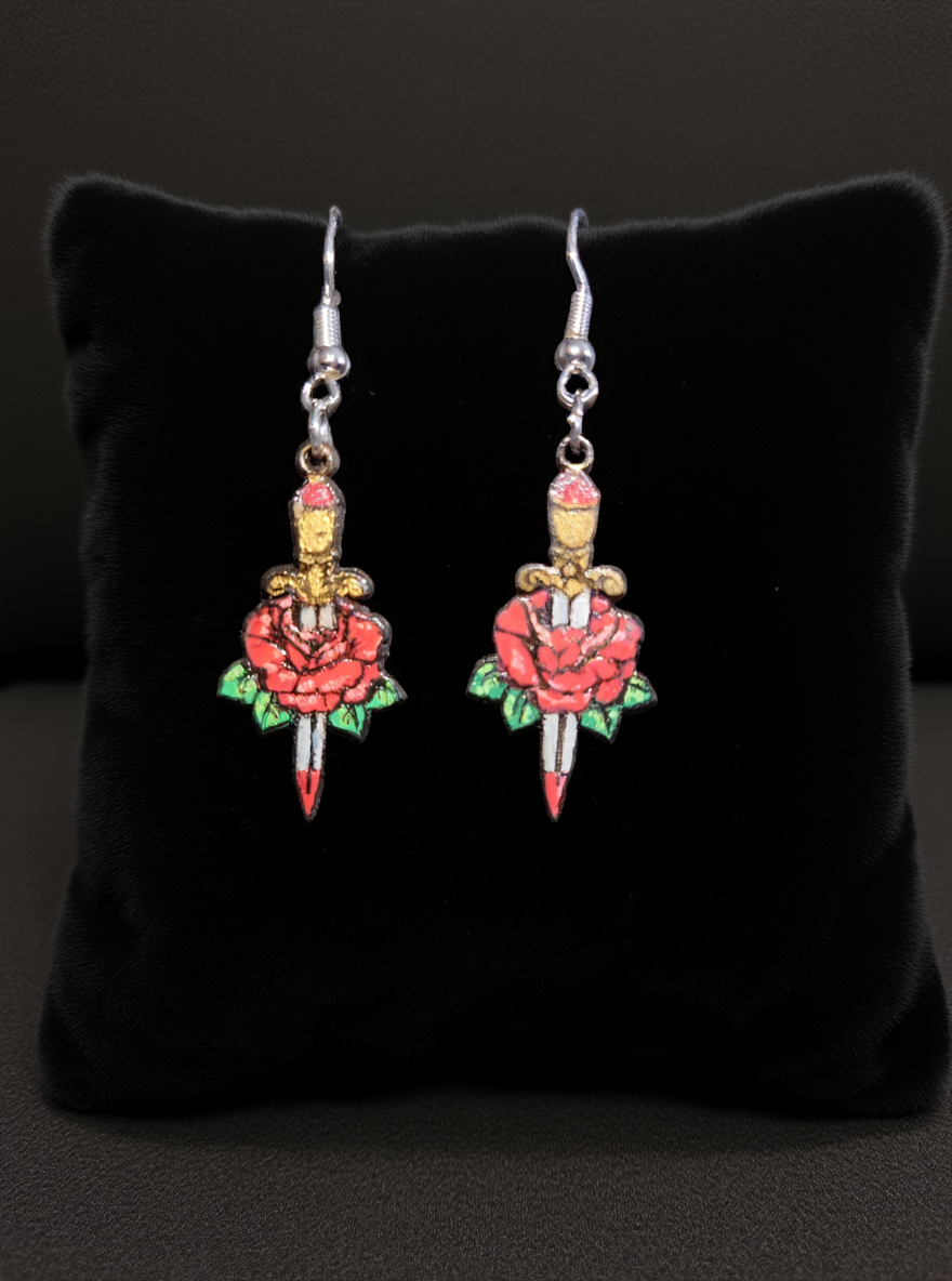 These earrings are inspired by traditional “old school” tattoo designs, featuring bold lines, iconic imagery, and timeless attitude.